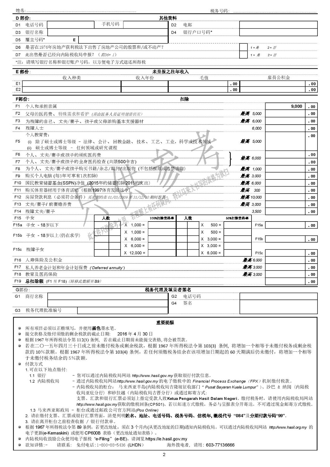 內陆税收局发佈文告表示,內陆税收局將免费提供各类报税表,以便能够让纳税人更容易掌握、计算並运用网路提交相关的资料。而为了方便一些不谙英文的国民,马来西亚内陆税收局更是特意准备了官方中文版的参考版本,让国民能更准确地填上资料。无论你是使用表格报税,或者是使用电子报税,都可以参考一下。